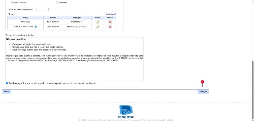 12. Verifique os termos de uso e, caso esteja de acordo, clique na caixa de seleção e depois em Avançar.
