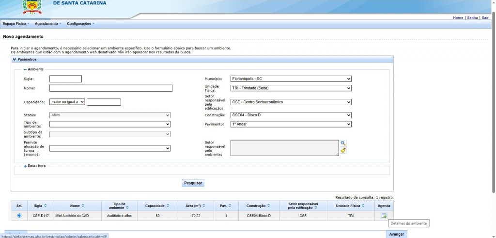 Informamos que as reservas do Mini Auditório do CAD serão feitas exclusivamente de maneira on-line, através do link: https://sief.sistemas.ufsc.br/